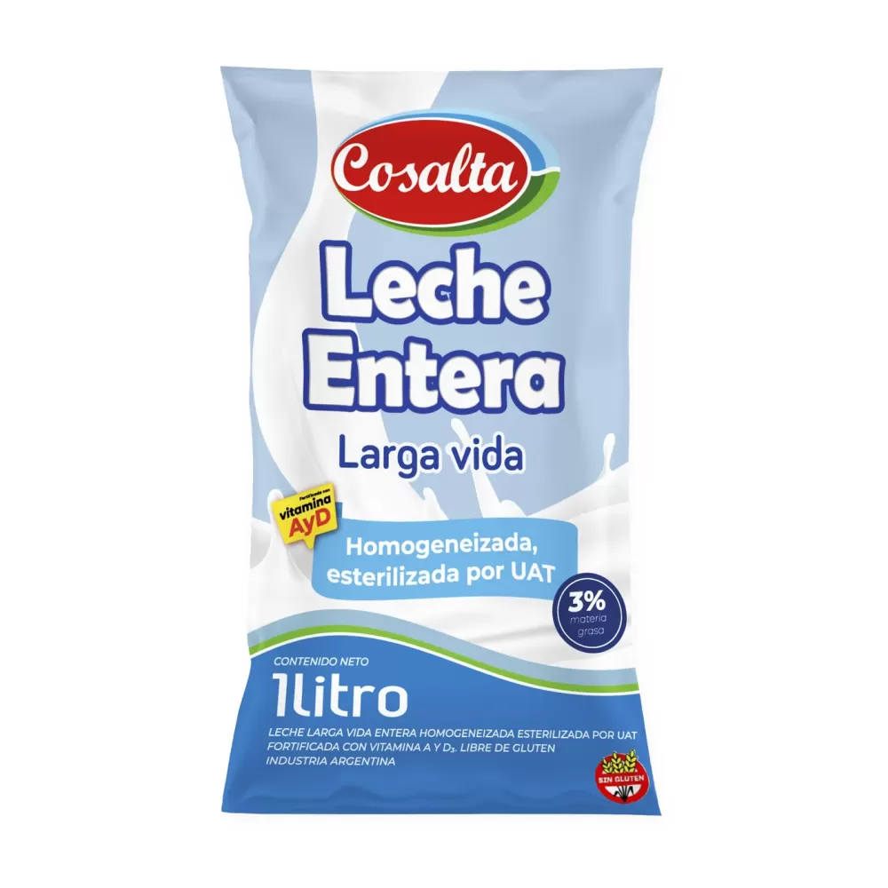 Leche Entera Larga Vida. Seleccionada, Homogeneizada, Fortificada con Vitaminas A y D. Esterilizada por U.A.T.